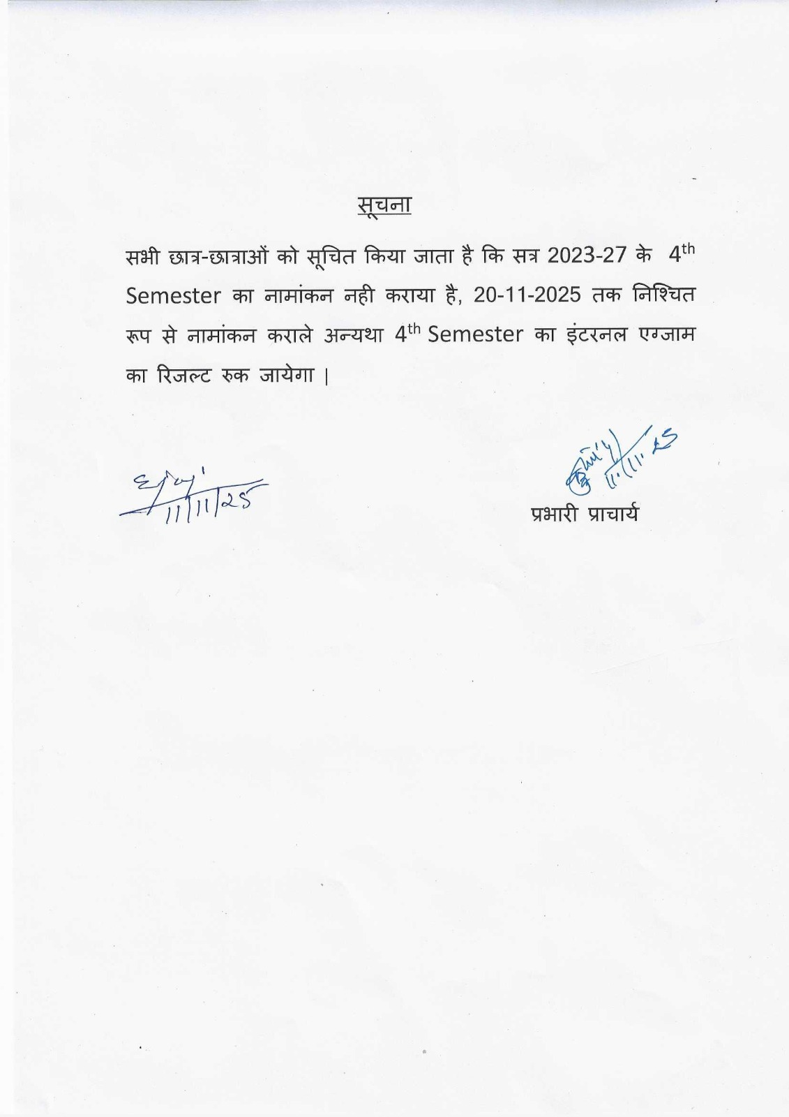 NOTICE REGARDING DATE EXTEND UG ADMISSION 4TH SEMESTER, (2023-27)